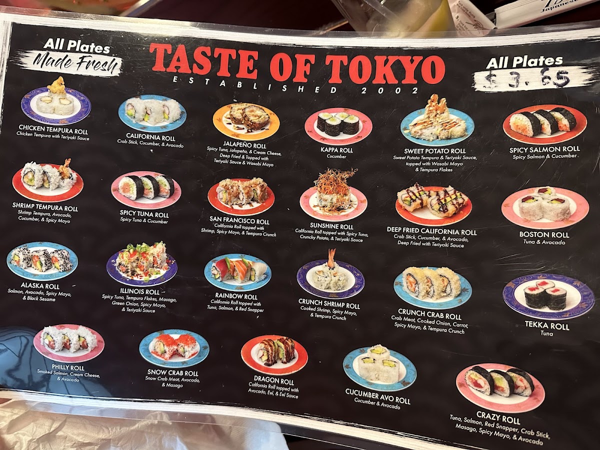When comparing the same plate costing $3.65 at Kura Revolving Sushi Bar, the Taste of Tokyo stands out as the better option. The quality, taste, freshness, and presentation of the sushi are all excellent. The only drawback is that some plates contain only one piece of nigiri or one roll, yet they are priced the same as those with more pieces. Overall, Taste of Tokyo is an excellent sushi belt restaurant.
