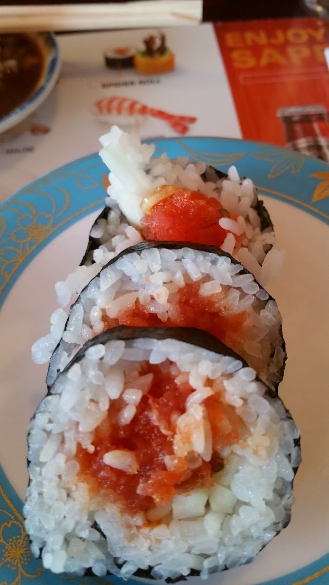 Rotary Boat Sushi. Friendly staff, tasty & fresh rolls. Quick to make custom requests. Most items $4 a plate.