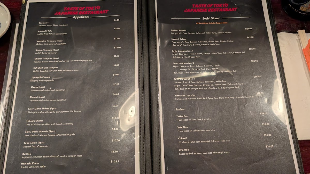 The menu at Taste of Tokyo offers a well-balanced selection that reflects the balance and precision of authentic Japanese dining. It’s a comfortable mix of fresh sushi, warm appetizers, and satisfying entrees, crafted to fit both quick bites and relaxed meals. Whether you’re settling in for a casual lunch, grabbing a light dinner, or sharing plates with friends over conversation, the options feel thoughtfully designed to match the inviting and friendly atmosphere.